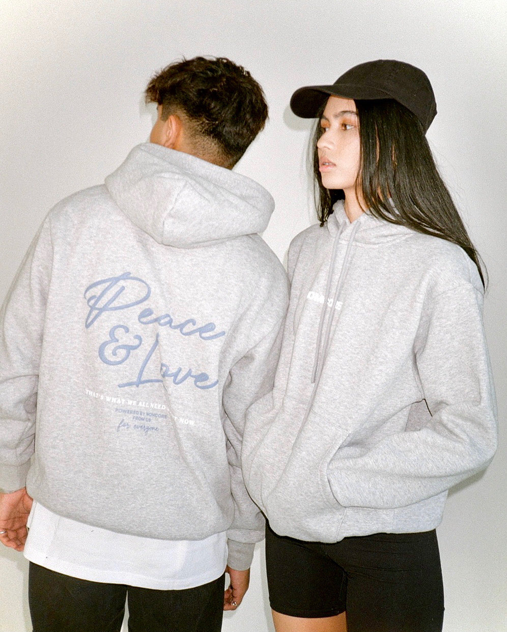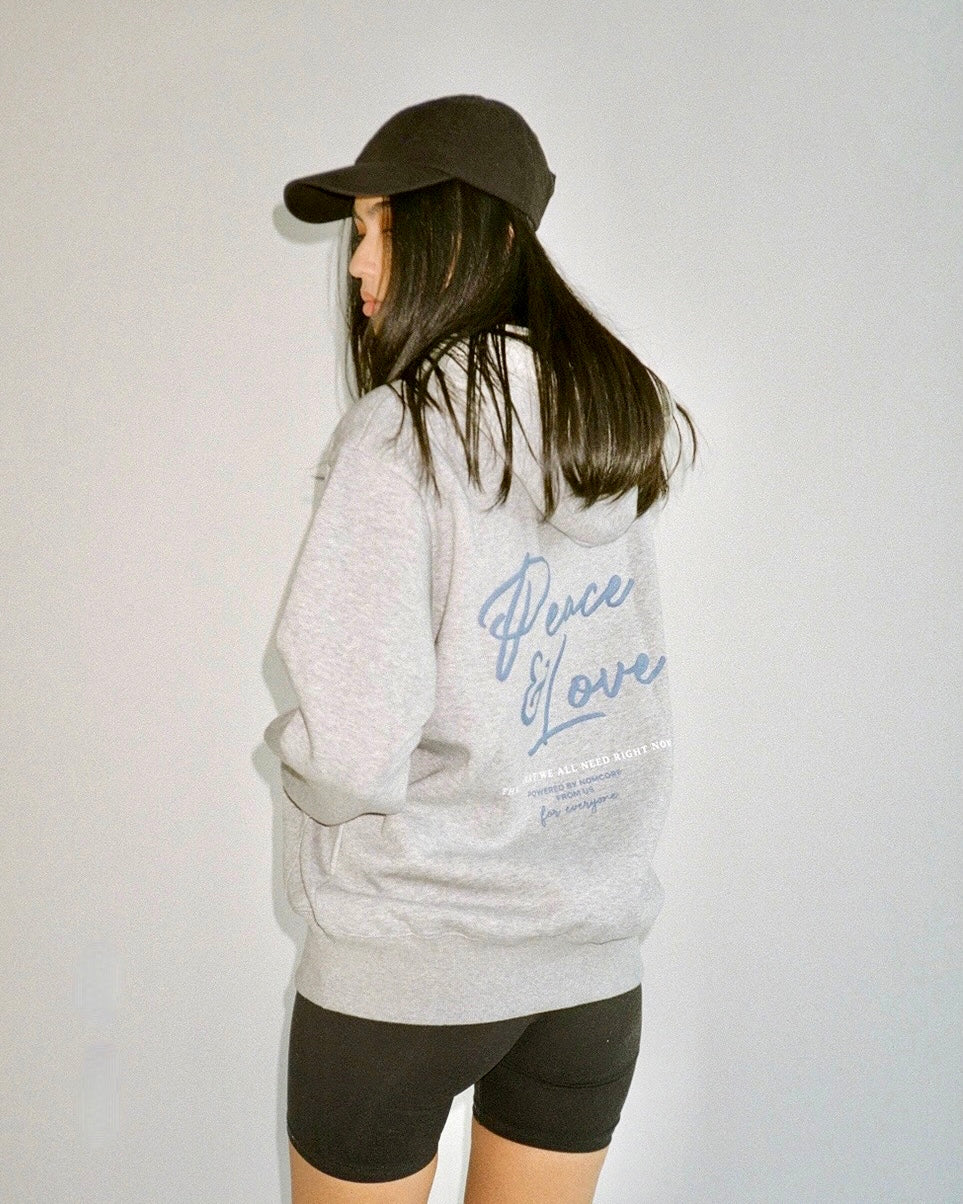 Slightly oversized fit hoodie in a heavy weight cotton. Super soft, pre-shrunk and piece dyed for the ultimate jersey. Ribbed hem & cuffs. Peace & Love puff print to the chest & back.